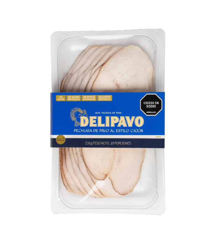 Media pechuga de pavo sin hueso y sin piel, adobada a mano con un recubrimiento de paprika, chile, tomillo y ajo, especias propias de la gastronomía Cajún, rica en tradición y cultura.